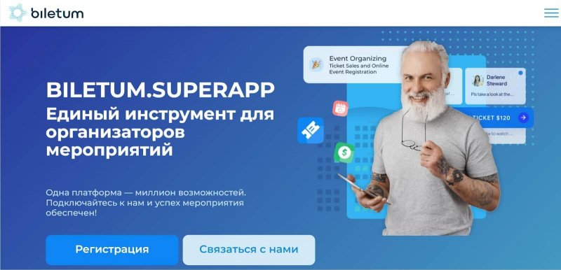 Biletum – сервис, позволяющий создавать брендированную страницу мероприятия с функцией продажи билетов. Вывод средств осуществляется по заранее утвержденному графику или запросу организатора. Для напоминания о мероприятии используются автоматические пуш-уведомления.