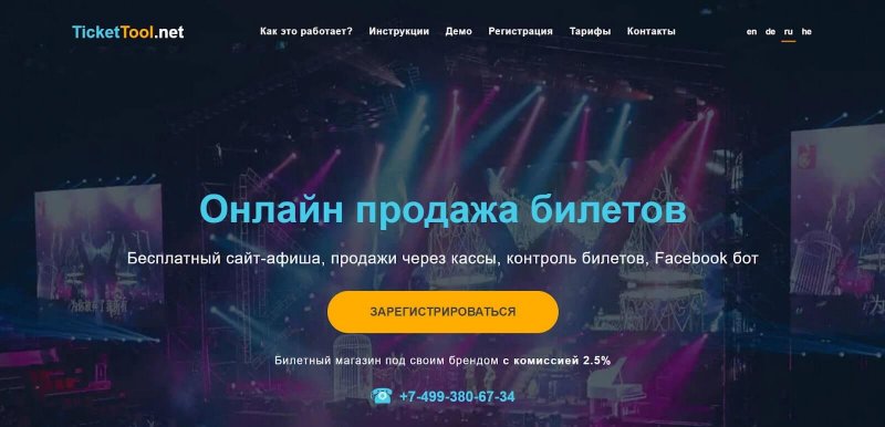 TicketTool.net – билетный сервис, позволяющий запускать продажу билетов на события любого типа: от концертов до турпоездок и рейсов на транспорт. Продажа может вестись под брендом организатора – с фирменным дизайном билета, использованием собственного домена и корпоративного почтового ящика. Платежи от клиентов поступают напрямую организатору.