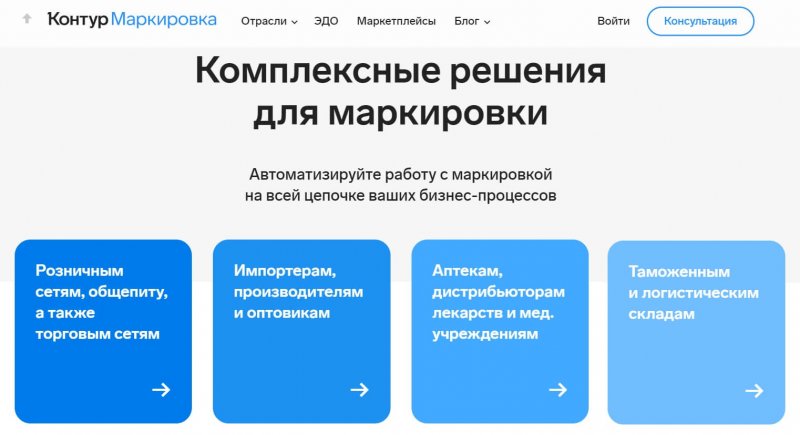 Онлайн-сервис автоматизированной маркировки товаров в экосистеме Контур. Предлагает отраслевые решения для производителей, импортеров, розничных сетей, общепита и других сфер бизнеса. Есть отдельный модуль для продавцов маркетплейсов.