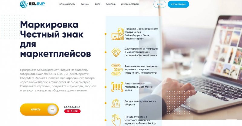 SelSup помогает продавать маркированные товары на Wildberries, OZON, Яндекс Маркет и СберМегаМаркет. Интегрируется с личными кабинетами селлеров и автоматизирует передачу сведений в Честный знак.