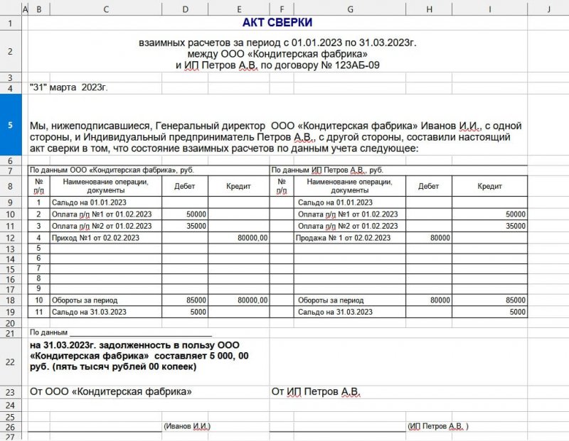 В следующем разделе покажем на примере, как заполнить акт сверки взаиморасчетов.