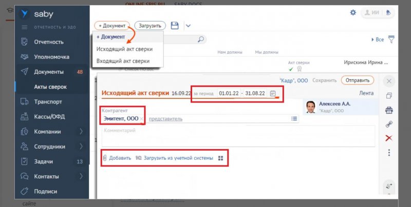 1. Бухгалтер составляет акты сверки и отправляет контрагентам оригиналы, электронные документы через ЭДО или сканы по электронной почте.