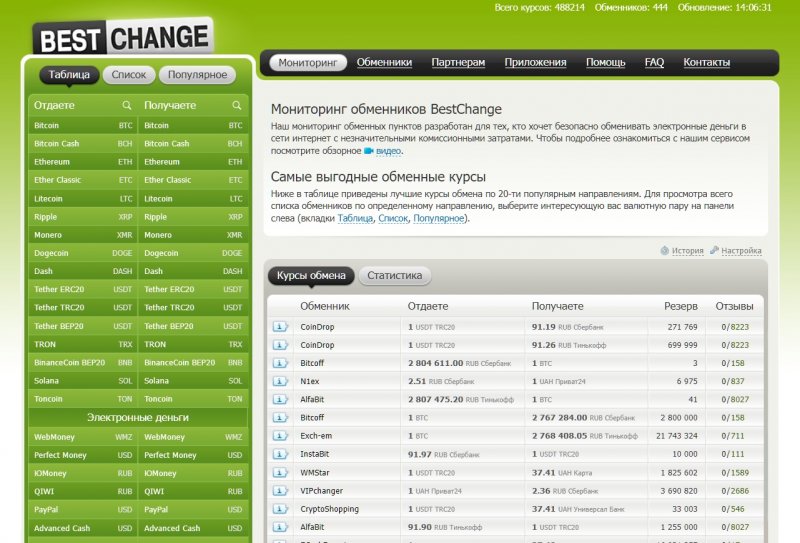 - кликните по названию выбранного обменного сервиса на мониторинговом портале BestChange и перейдите на его официальный сайт;