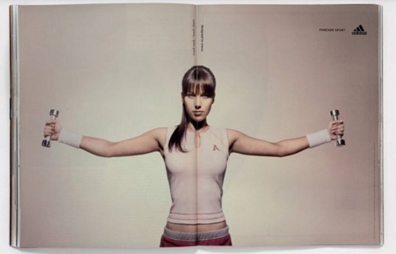 Оригинальная реклама adidas: когда открываешь разворот журнала, кажется, что девушка двигается и выполняет упражнение