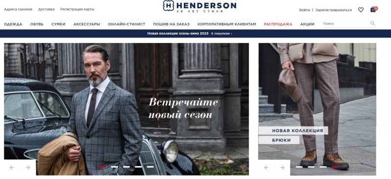 Пример удачного позиционирования: магазин мужской одежды HENDERSON выработал узнаваемый стиль, который остается неизменным во всех коллекциях