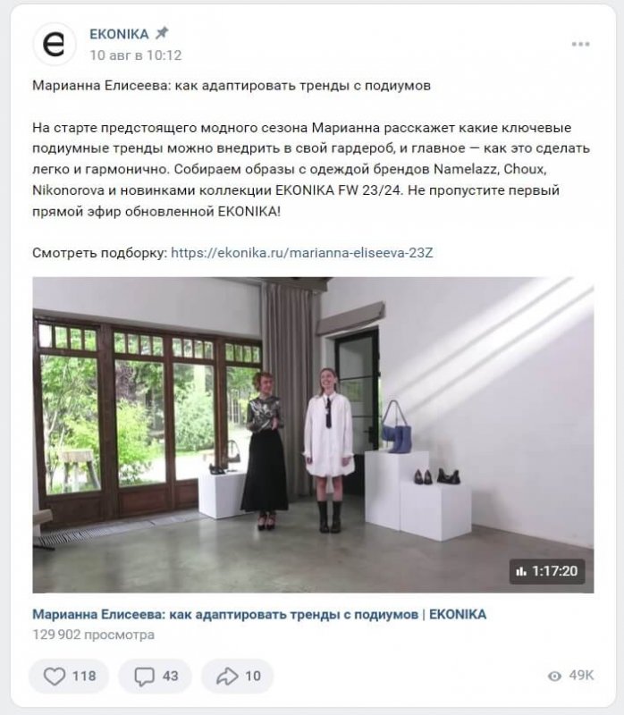 Бренд EKONIKA делится с подписчиками советами стилиста, а заодно рекламирует свои товары